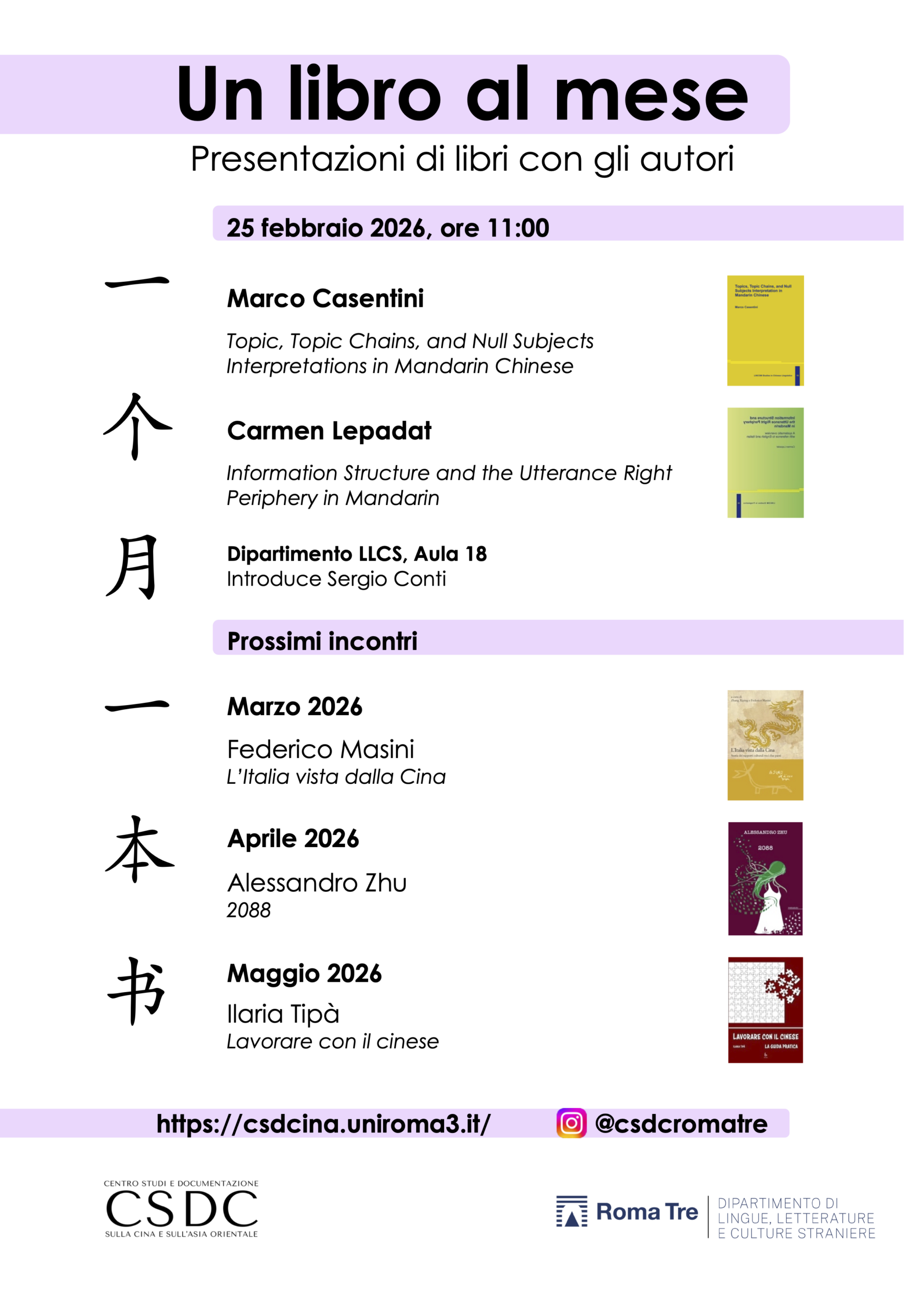 Febbraio 23, 2026 Un libro al mese: presentazioni di libri con gli autori HomeLanguage and Culture General EventsUn libro al mese: presentazioni di libri con gli autori